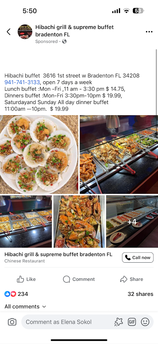 Saturday & Sunday All Day Dinner Buffet 11 am —-10:30 pm